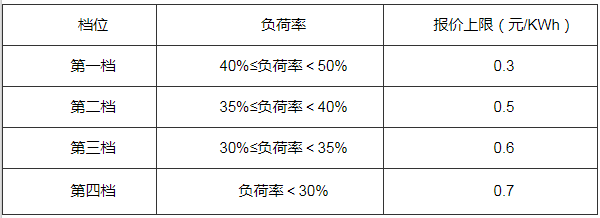 四、調(diào)整和細(xì)化電力深度調(diào)峰交易“階梯式”負(fù)荷率和報(bào)價(jià),具體分檔和報(bào)價(jià)上限見(jiàn)下表: