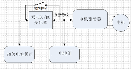 3、針對(duì)以上問(wèn)題兆合推出了超容電池混合電源的構(gòu)想方案,系統(tǒng)框圖組成如下